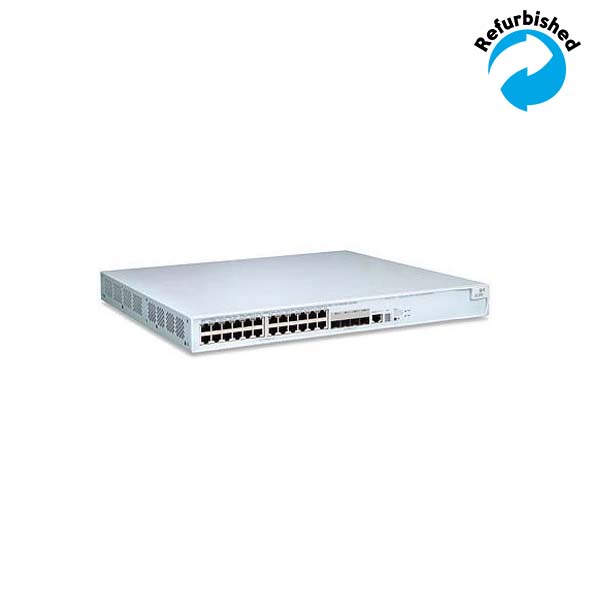 The 3Com Switch 4500 is a high performance, managed 10/100 switch with advanced features. Perfect for cost-conscious medium-sized businesses and branch offices looking for secure LAN connectivity. Layer 2 switching along with Layer 3 RIP-based dynamic routing make the Switch 4500 for wiring closet workgroup connectivity. This as the core for small-size enterprises. The Switch 4500 26-port features 24 10/100 ports and two dual-personality ports, operating either as 10/100/1000 or SFP-based fiber. Up to eight switches can be stacked via built-in Gigabit Ethernet ports, allowing single-IP management and distributed links in a stack of up to 384 ports.